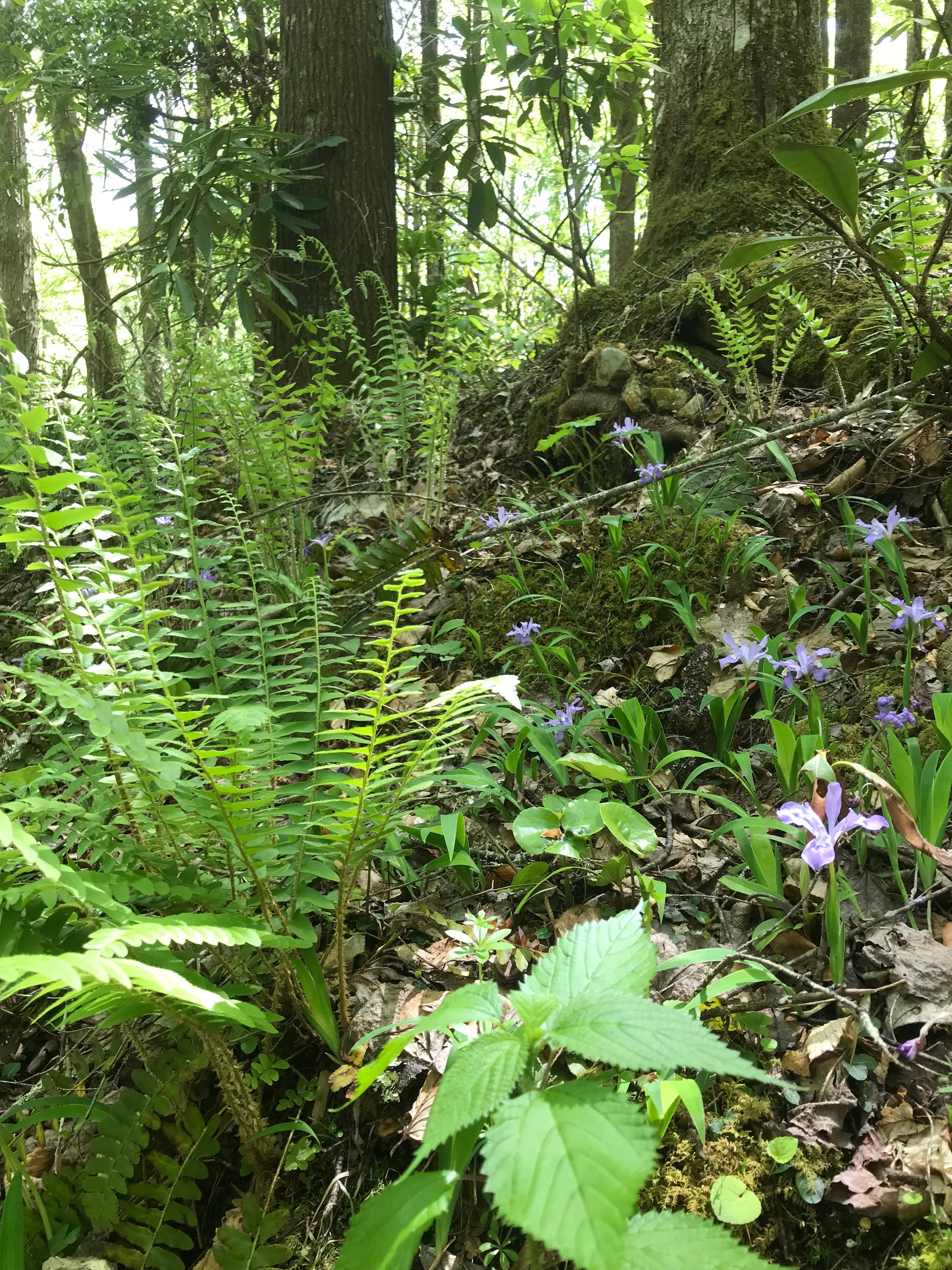 Ever so carefully I attempt to glide my feet between the plants covering the forest floor. I fail every time. There is life everywhere and I keep stepping on it. The canopy is almost fully formed now and the ground is covered in woodland plants, many blooming - ferns, orchids, May Apples, Wood Betony, violets, wild ginger, dwarf irises - on and on a showcase of possibilities.